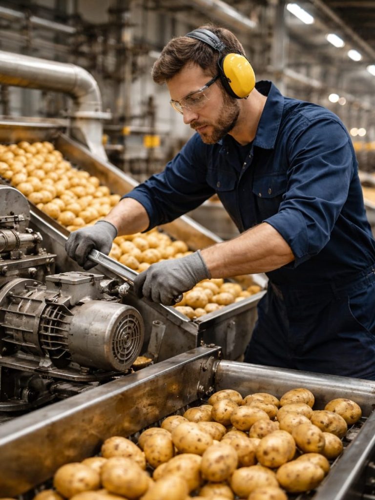 - Inbetriebnahme und Überwachung einer modernen Schäl- und Sortieranlage für Kartoffeln